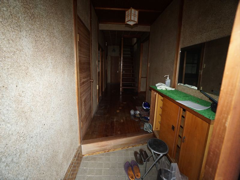 現状渡し(契約不適合免責)、昭和57年増築、未登記堀込車庫あり、雨漏り箇所あり |